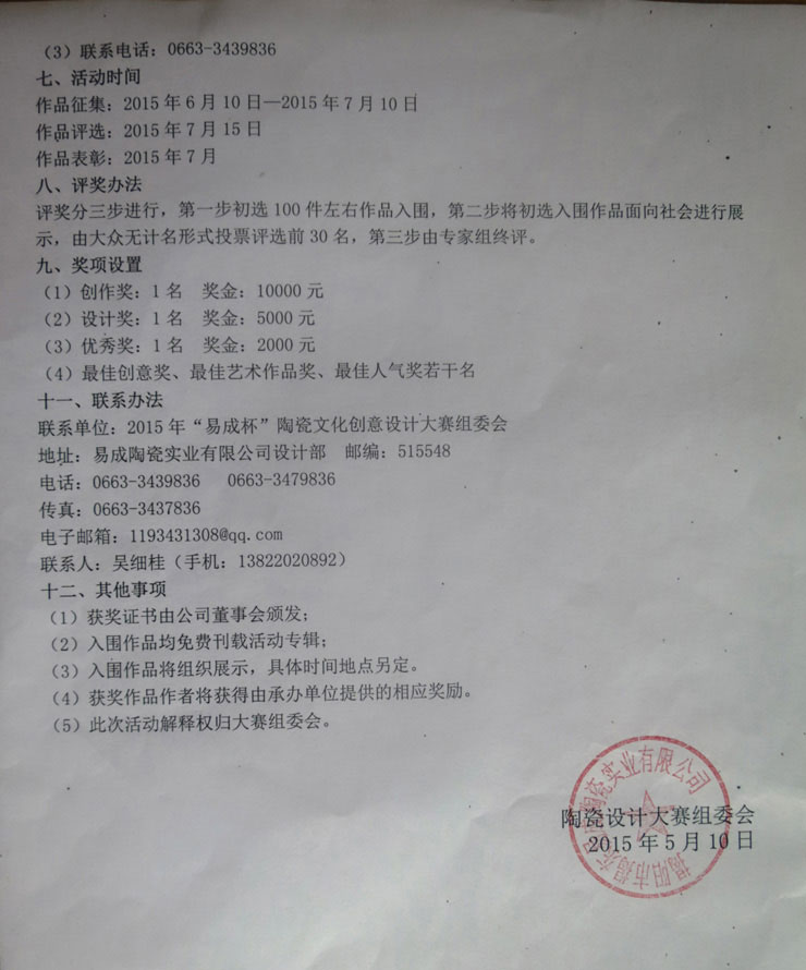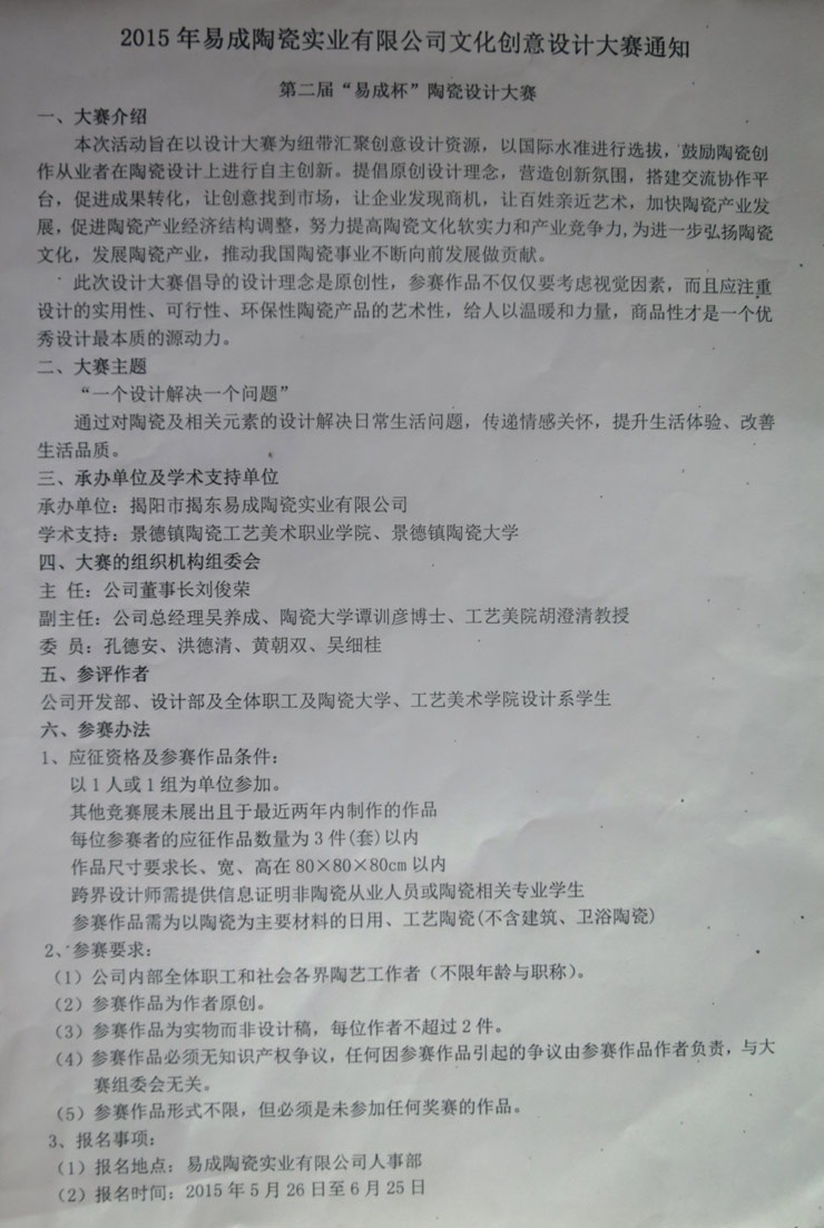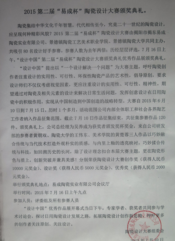 易成陶瓷實(shí)業(yè)有限公司設(shè)計(jì)大賽及頒獎(jiǎng)典禮
